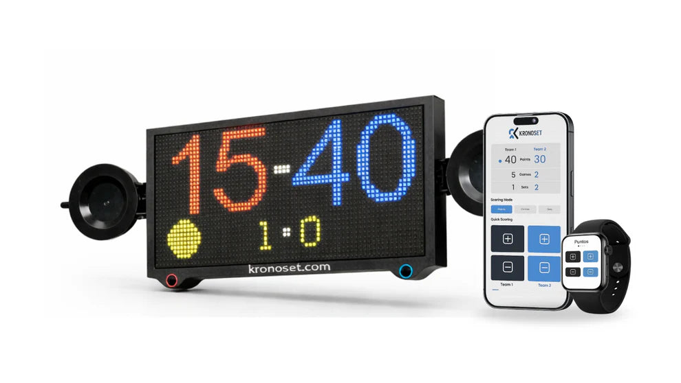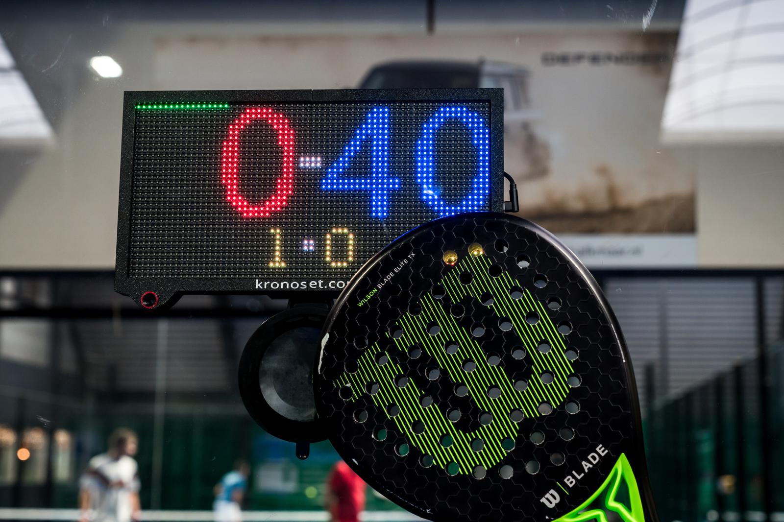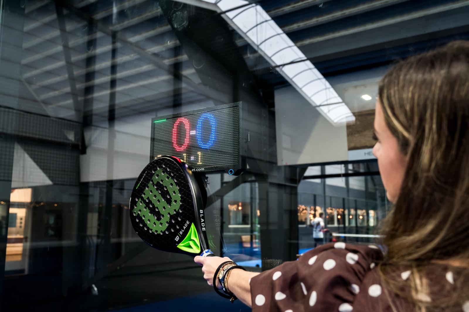De bediening werkt met een racketdetectiesensor, niet met bewegingen van spelers. Iemand die voor het display staat, activeert de score dus niet.